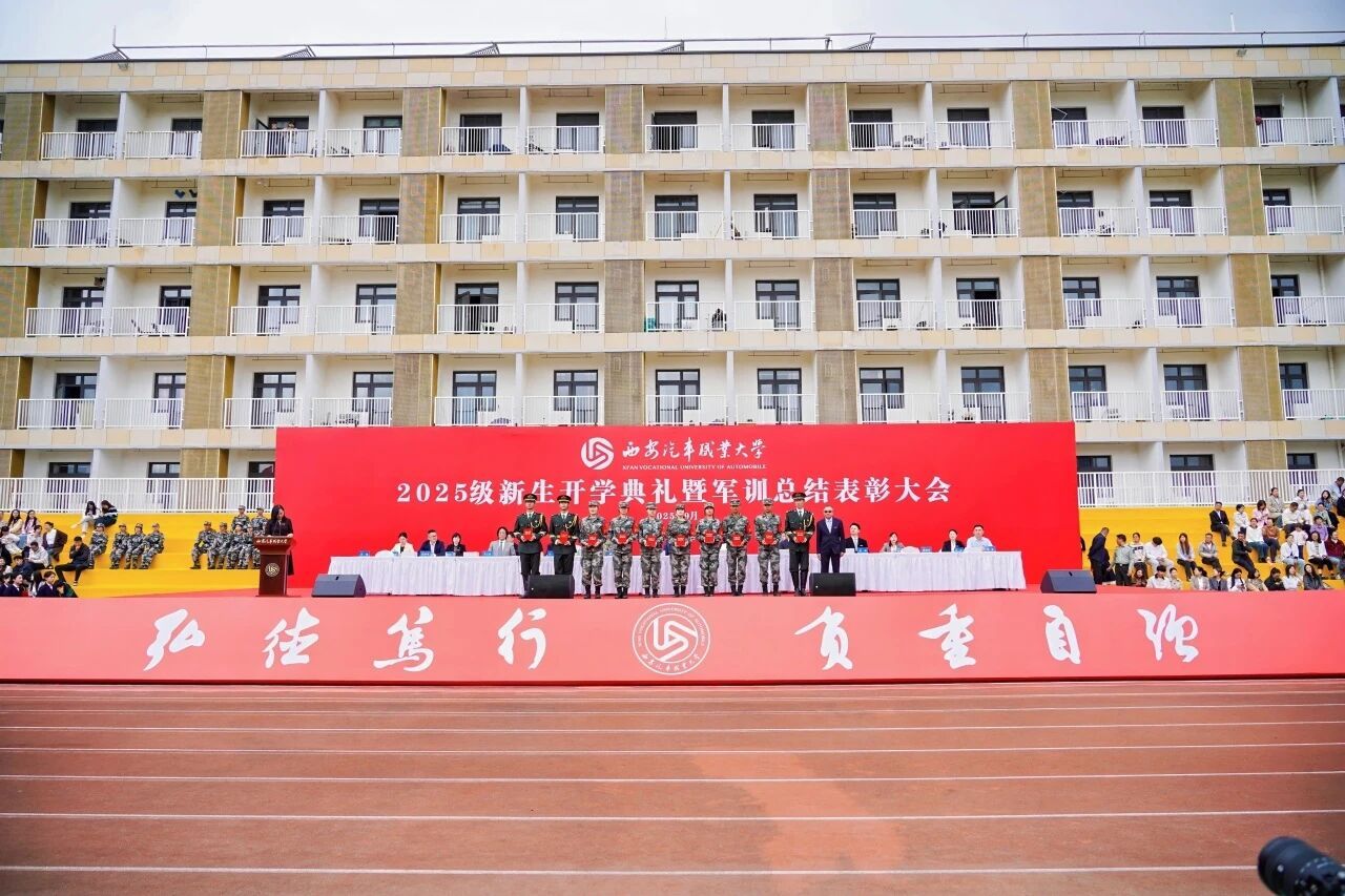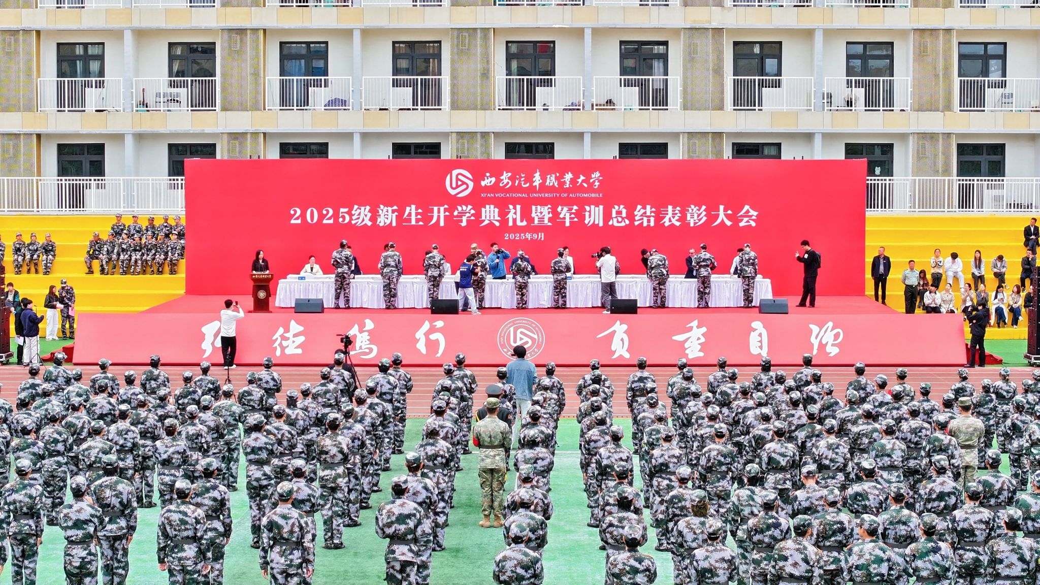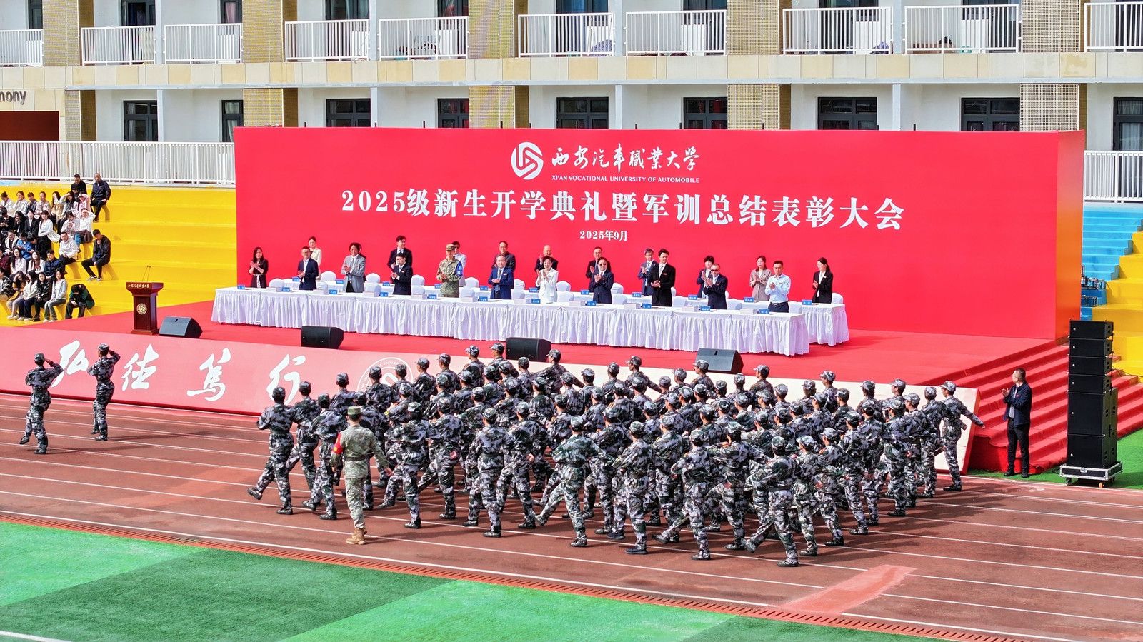 9月19日,西安汽车职业大学2025级新生开学典礼暨军训总结表彰大会在临潼校区操场举行。全体校领导,二级学院院长,相关职能处室负责人及陕西车匠人汽车服务有限公司董事长、西安汽车职业大学“车匠人”优质生源奖发起人康中华,西安路豹汽车维修服务有限公司总经理刘正出席大会,军训团领导,临潼校区2025级全体新生、师生代表、新生辅导员及家长代表参加大会。大会由副校长乔祎主持。