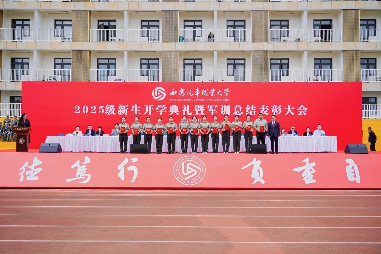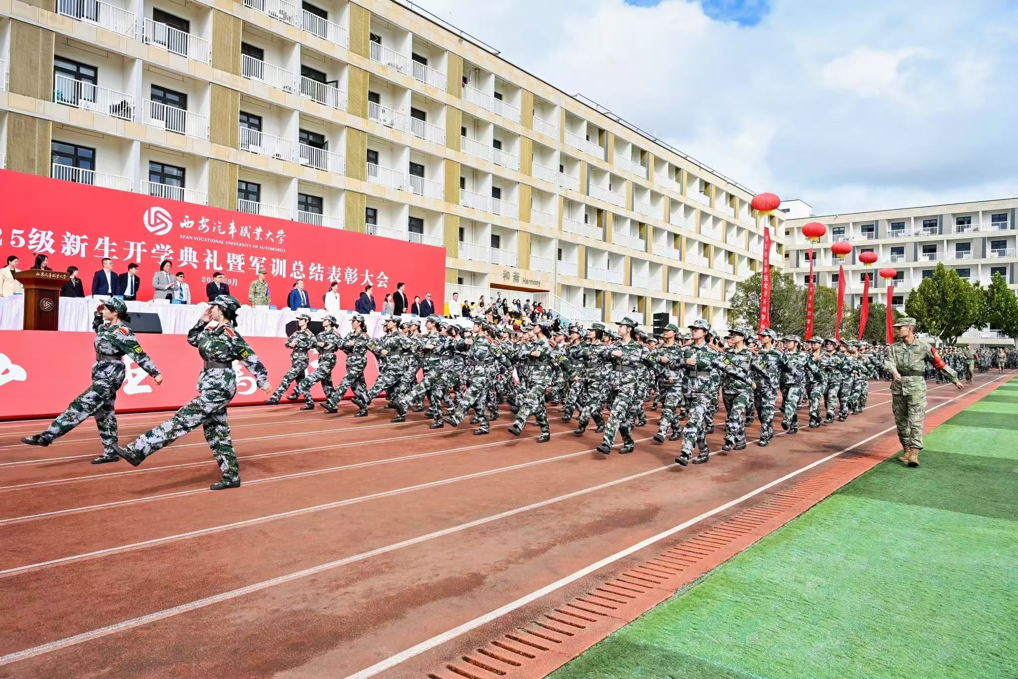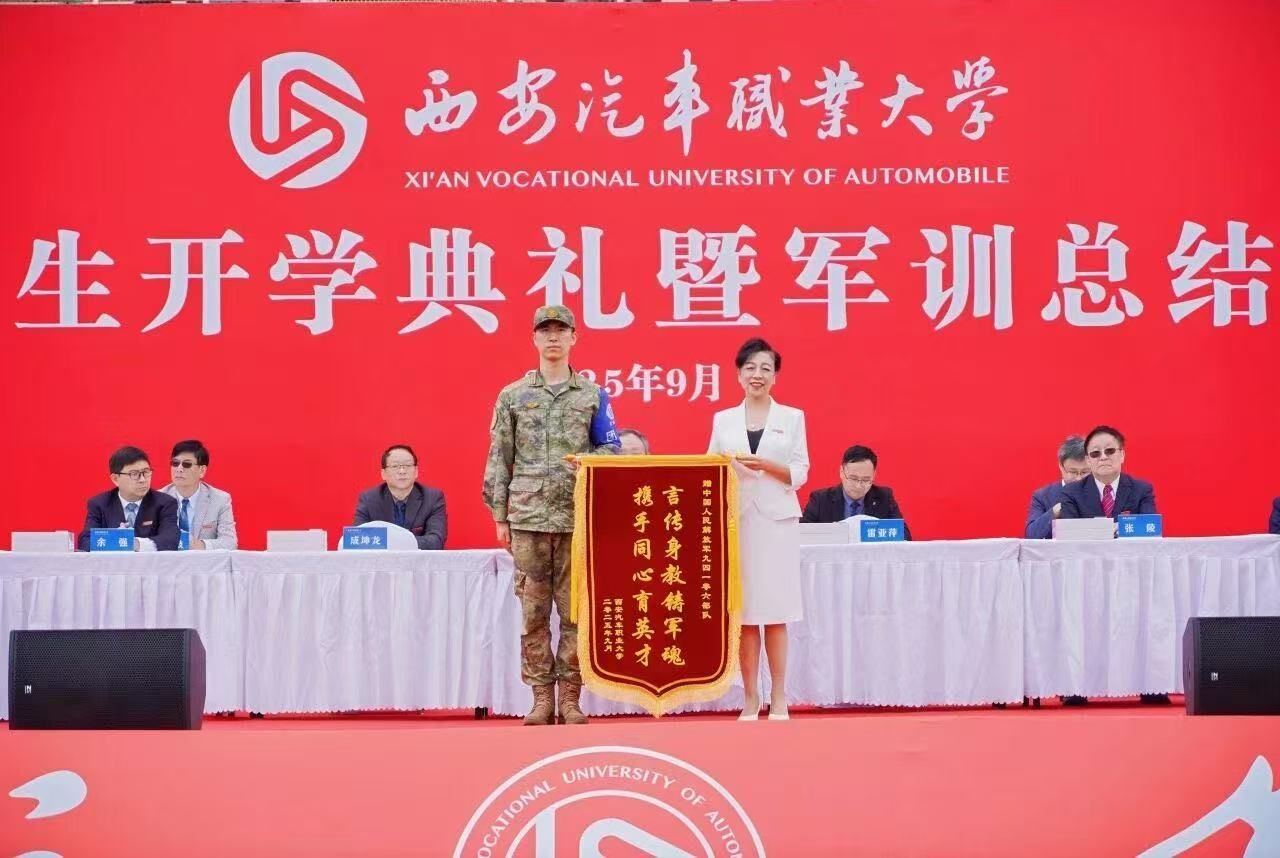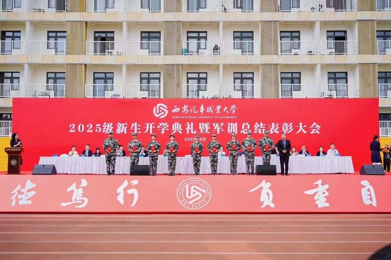9月19日,西安汽车职业大学2025级新生开学典礼暨军训总结表彰大会在临潼校区操场举行。全体校领导,二级学院院长,相关职能处室负责人及陕西车匠人汽车服务有限公司董事长、西安汽车职业大学“车匠人”优质生源奖发起人康中华,西安路豹汽车维修服务有限公司总经理刘正出席大会,军训团领导,临潼校区2025级全体新生、师生代表、新生辅导员及家长代表参加大会。大会由副校长乔祎主持。