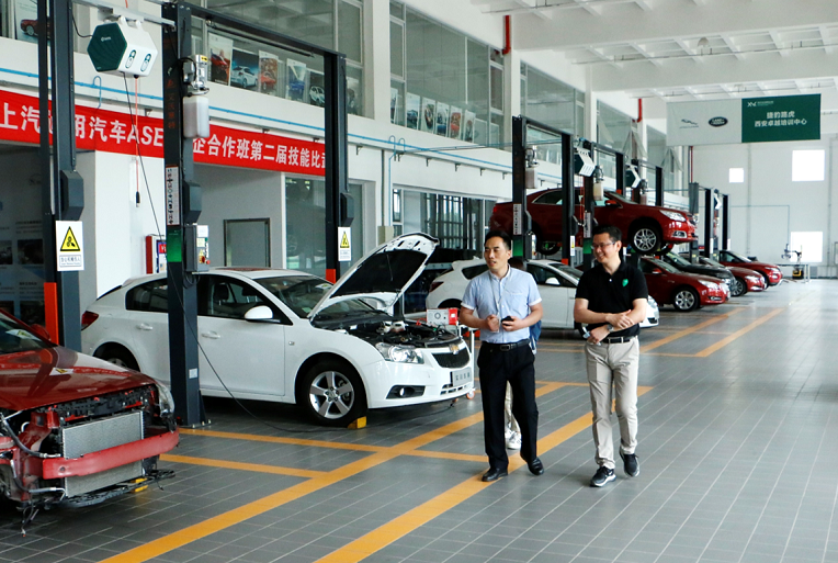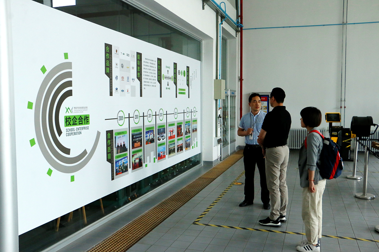 张越一行首先参观了新能源实训中心、校企合作中心、西安国际大学生赛车体验基地、图书馆等,听取我校办学情况介绍,对我校配套完整的实验实训设施、先进校企合作教学环境给予了高度评价。